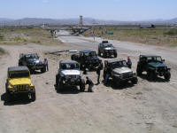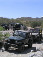 | The Jeep convoy grew from the get go as Chris and Dana's Jeeps met up and then later with the help of the CB's Jared merged perfectly onto the Interstate and into formation between Chris and Dana like it had been practiced. When we got to the White Tanks we found one of Eric's friends waiting for us and him. By the time we got to deflating and discoing down, the Jeep count had significantly increased to six Wrangler and one Cherokee and another Wrangler caught up later to make an even eight Jeeps. |
