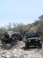 When we began the trail, we weren't sure if besides being able to navigate the rocks, we'd be able navigate all the trash that had recently been dumped into the wash. But it all worked out and they guys were soon to learn why the trail had been named as it was. While offering the normal 3.5's obstacles (and harder spots to play on) it's pretty short and really sort of a tease; just enough to leave you wanting more.