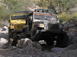 When the other Jeeps got left out of the picture, our guys had been a little nervous about being the only ones that weren't severely modified and sitting on 37's. It turned out not to be an issue though. The guys we ran with were really cool and let us take our time and even helped out with the spotting. Sure when they saw a 5.0 obstacle or a rock the size of a dumpster sitting in the middle of the wash, they went for it, but they didn't try to show anybody else up or anything.