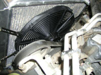 You obviously have to take out the old radiator and fan as we already had done.  The fan comes right off by removing  the huge nut between it and the water pump.
