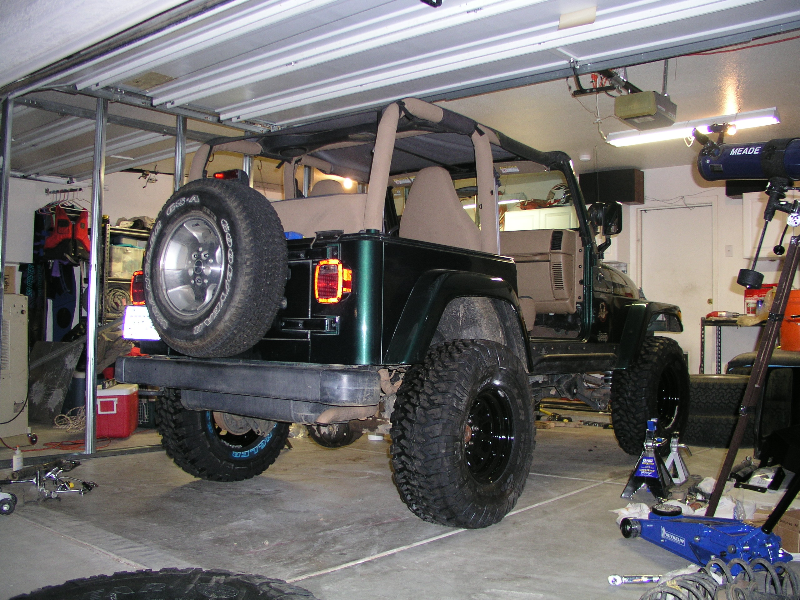 Hope you have some new longer shocks picked out to accommodate for the new lift and flex. Chris went with the Edelbrock Xtreme Travel Reservoir Shocks and you can check out that install here.