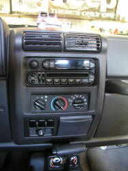 This is another non pertinent install. Remember that game when you were a kid where you kept trying over and over and over to get that darned round peg in the square hole? ....Me either. Anyway.... This is kind of like that. If you have a Jeep manufactured before 2003, you know that the stereo CD player, besides being temperamental at times, will not ever play your CDR's or RW's. The common logic would be to go out and buy a more high end head unit that would handle the different formats. The problem is, anything new and flashy is just theft bait when sitting in an open air (or plastic and canvas shrouded) Jeep. Not only will it attract them to your new brand name deck, but it gives them a reason to be in your vehicle and then presumably picking up other souvenirs for themselves along the way that may have remained happily halfway hidden had they not already been browsing. Now if you've the honors of having a '03 and up model TJ, you know that Jeep finally got with the program and made their stereo's multi-compatible to play your own tracks. So instead of beginning the seemingly eternal cycle of providing pawn shops everywhere with your local neighborhood criminal's baggings, I figured why not install a newer deck in Dana's '02 TJ and see how that worked out. We have never had any problem with the quality of the stock unit. In fact, we had recently installed a new deck in Chris's '01 Jeep, and another faceplate later, it still plays just as loud as his old stock one.