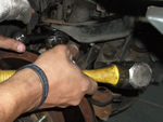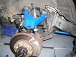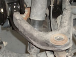 This is the step that in the instructions, exists as only one sentence, but could take you in all actuality, anywhere from 1 to 5+ hours. The stock tapered bolt is such a punk to remove, it has driven people to insane lengths to remove. After removing the nut and the break line bracket attached to the arm, get ready to spend some quality time with your old arm. You might as well leave the arm mount bolts on for leverage but keep them soaking in Liquid Wrench. Another noteworthy thing not mentioned but extremely helpful would to be to mark the adjustable cam bolts so you're alignment's not too bad off when you reinstall.
