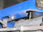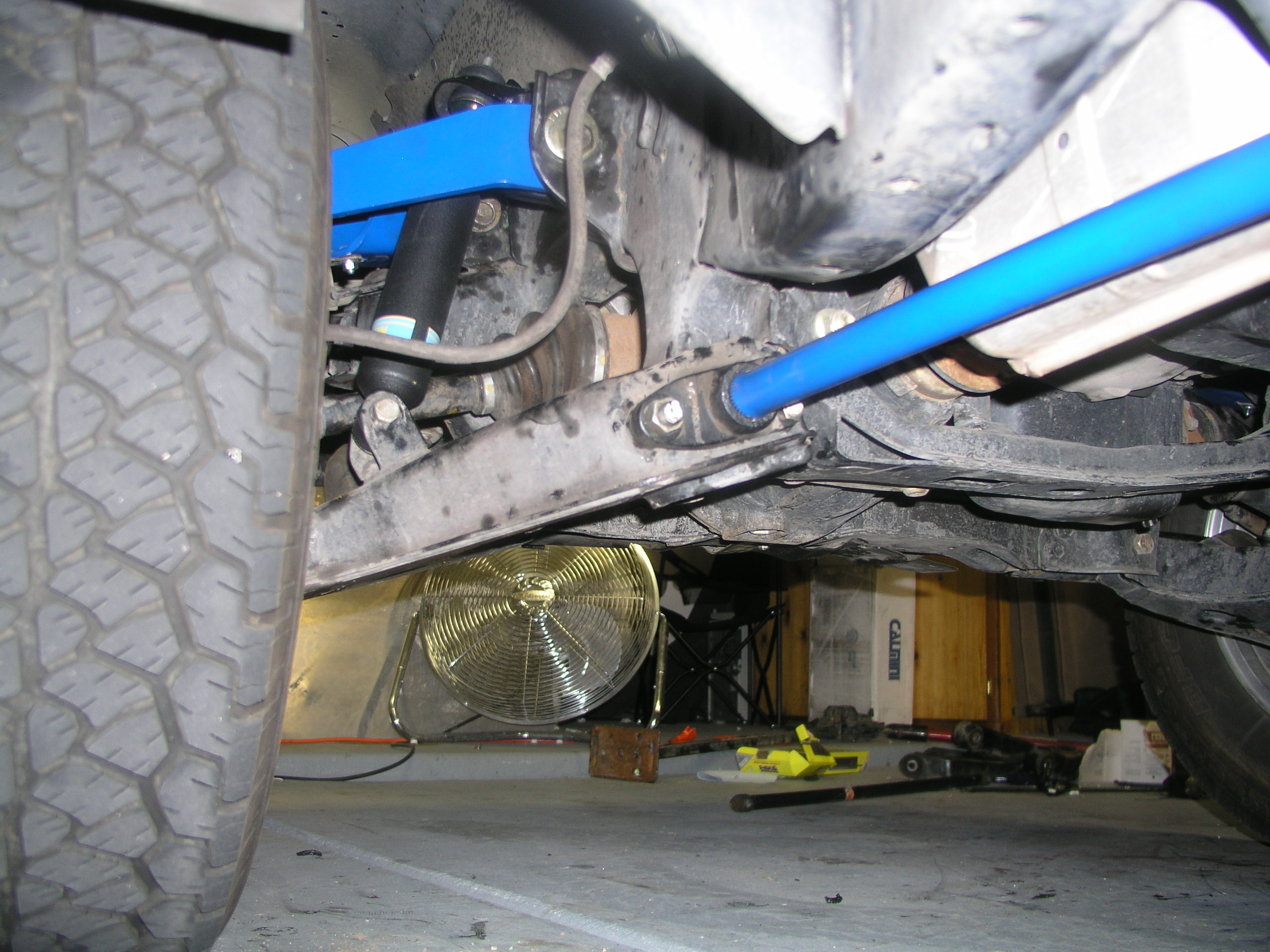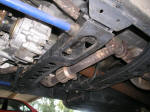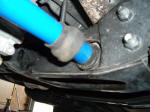 **Note- I can't state this more seriously: make sure that the bars are properly seated on both sides. It would help if the anchors were made a little bit longer, but make sure that you can't see too much spline (especially unpainted spline) at the rear anchors. If you see too much on one side like the bar is too short, your need to play with your front alignment or the bar can strip its mount while driving, causing your front susp to become unsupported and bottom out. Apparently one side of ours wasn't seated all the way back because the alignment was too far off, and we had to loosen the Cal arms and move things around to take from the other side to give to the short one. Cost of new anchor: $60 at dealer. The new stronger T-bar won the battle and was fine. |