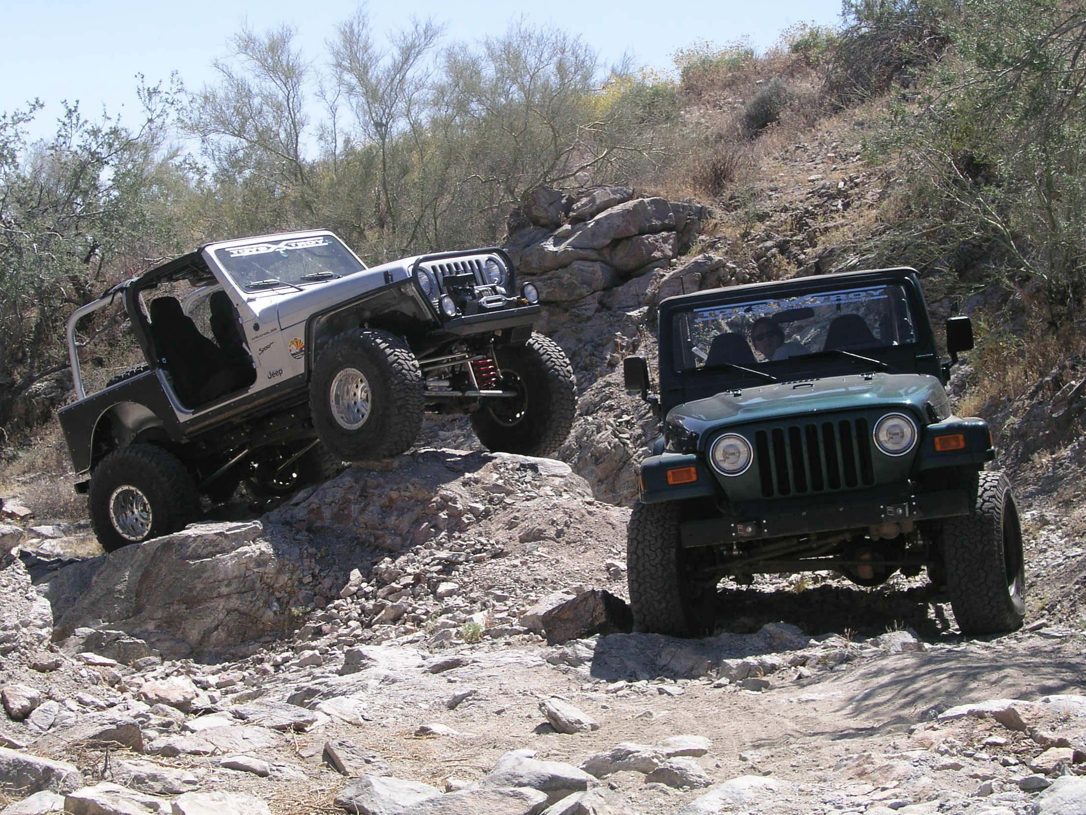 When we began the trail, we weren't sure if besides being able to navigate the rocks, we'd be able navigate all the trash that had recently been dumped into the wash. But it all worked out and they guys were soon to learn why the trail had been named as it was. While offering the normal 3.5's obstacles (and harder spots to play on) it's pretty short and really sort of a tease; just enough to leave you wanting more.