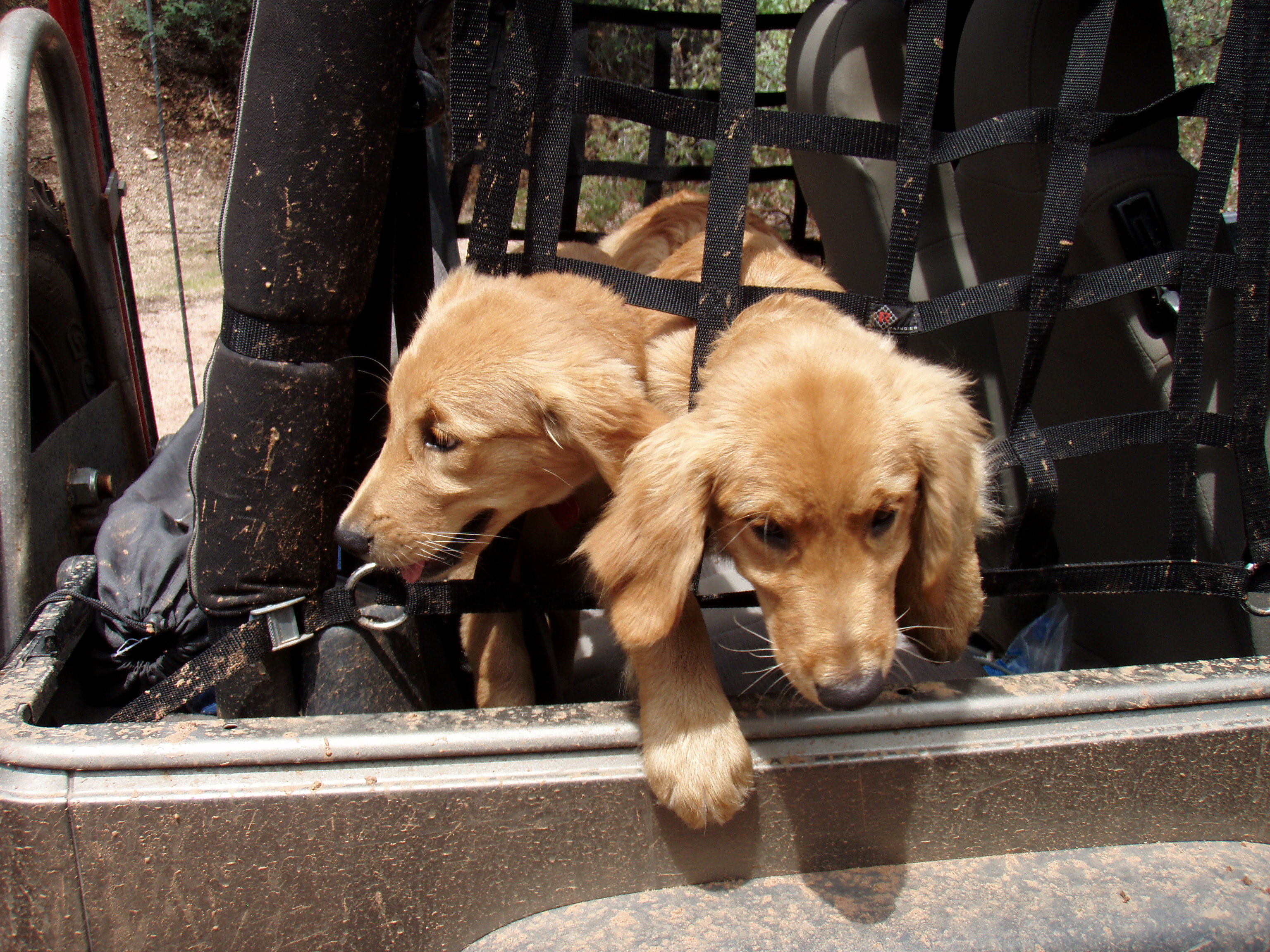 Oh, wow, I totally forgot to mention our other passengers, besides the regular people ones. Jared immersed his new Golden Retriever pups into the Jeep world this trip and his new Wrangler netting, besides looking bad ace, could not have been more utilized. It kept them in and safe and they were always calm, even we weren't so much, and would poke their heads through for pettings when we stopped.