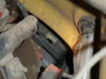 The transfer case hose is for some reason, factory extended forward to sit atop the front of the tranny. It can be seen from underneath the Jeep, or in the engine compartment near the firewall. This hose would be the easiest hit by the water so we ran it high up to meet the front axle one on the support bar. Again, eventually, depending on how sticky of a situation Dana decides to get her Jeep into, the hose could be run into the cab, perhaps along the windshield frame.