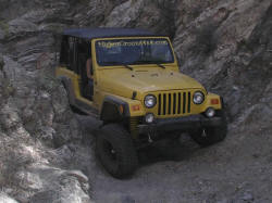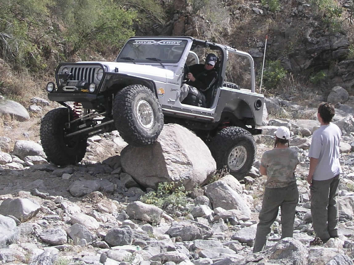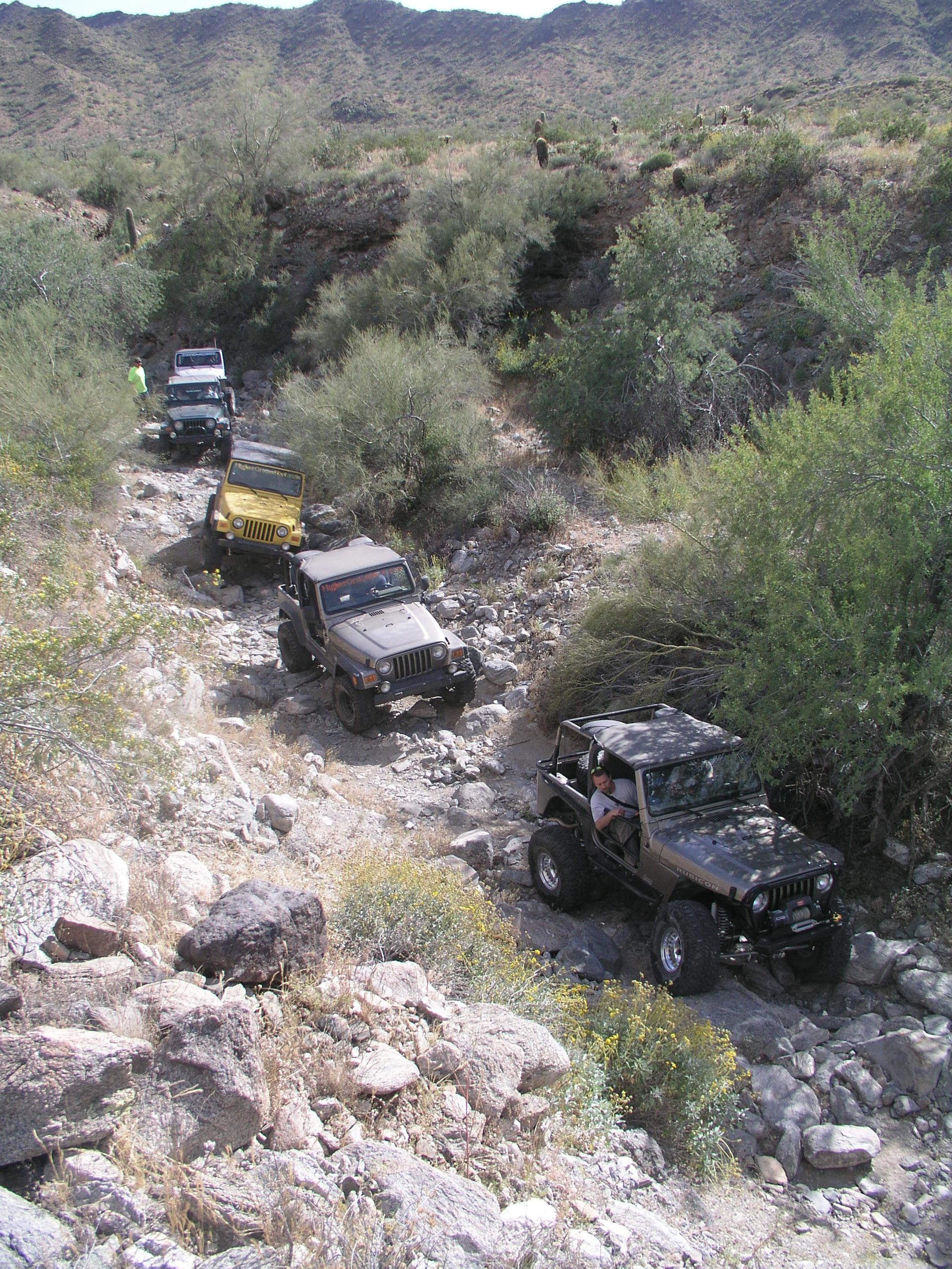 When the other Jeeps got left out of the picture, our guys had been a little nervous about being the only ones that weren't severely modified and sitting on 37's. It turned out not to be an issue though. The guys we ran with were really cool and let us take our time and even helped out with the spotting. Sure when they saw a 5.0 obstacle or a rock the size of a dumpster sitting in the middle of the wash, they went for it, but they didn't try to show anybody else up or anything.