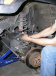 driveshaft at the axle (mark the their relationship so you reinstall it the