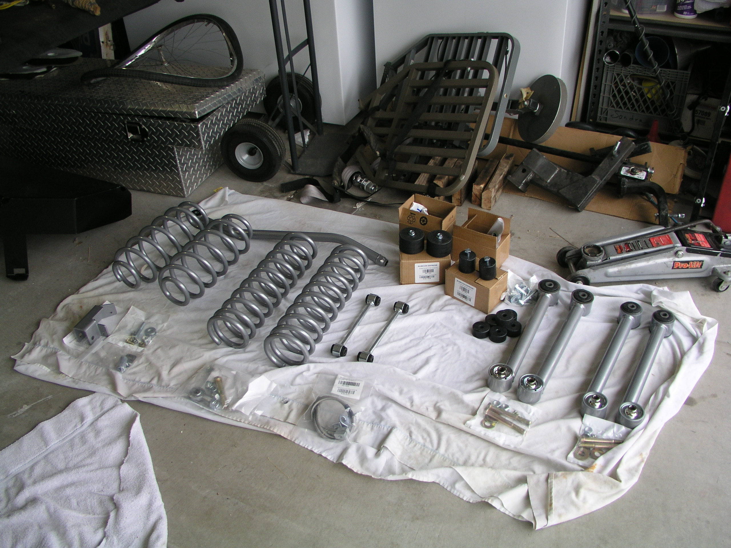 It was the first real project he turned to me for help with, and we dove straight into it as soon as the parts came in.  If you're out their looking for reassurance that you can install this lift on your own, maybe this is the wrong site for you.  No, I kid, it was our first time too and we took it slow, but in the end, Chris's baby came out just fine... wait that didn't sound right... on to the install.