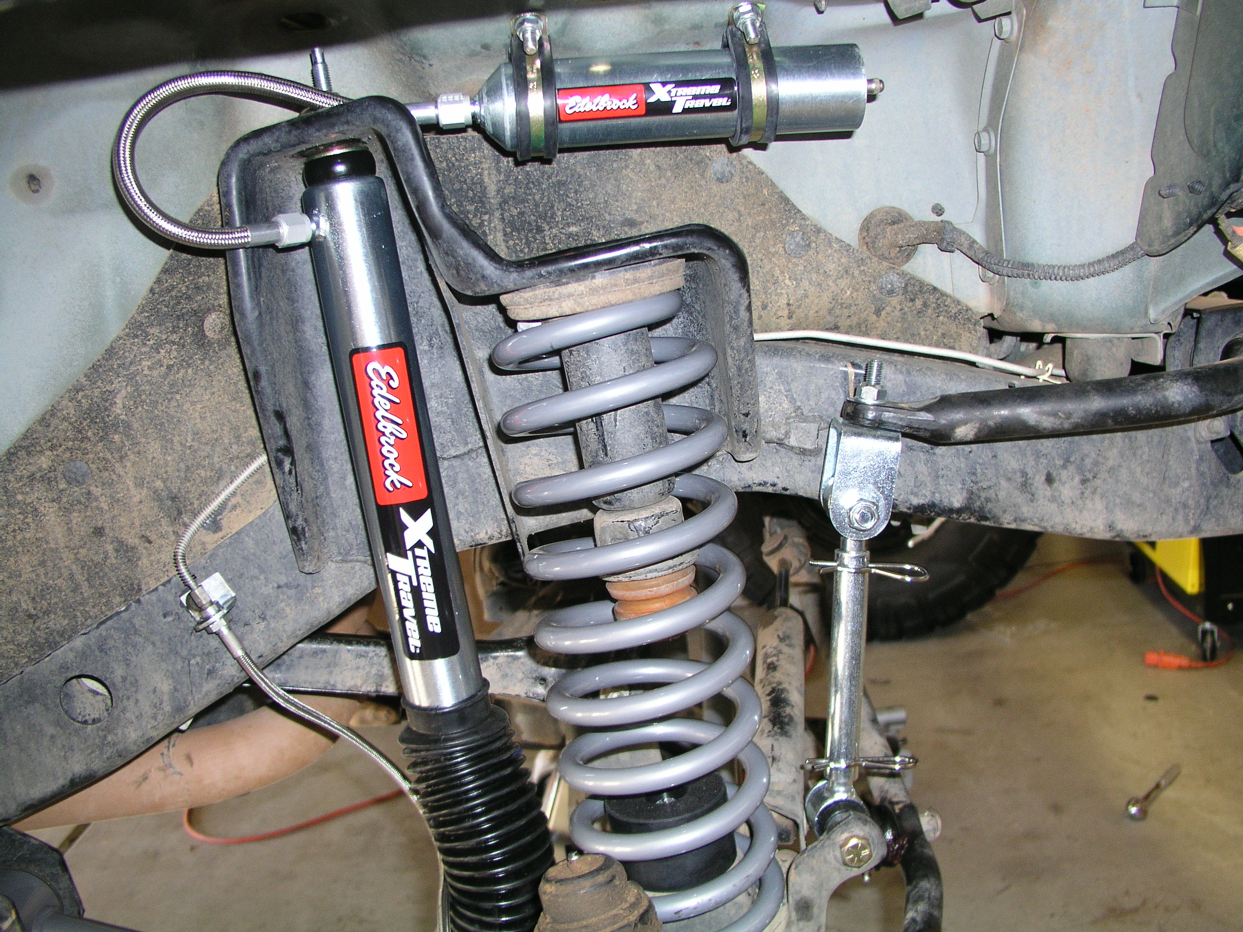 Hope you have some new longer shocks picked out to accommodate for the new lift and flex. Chris went with the Edelbrock Xtreme Travel Reservoir Shocks and you can check out that install here.