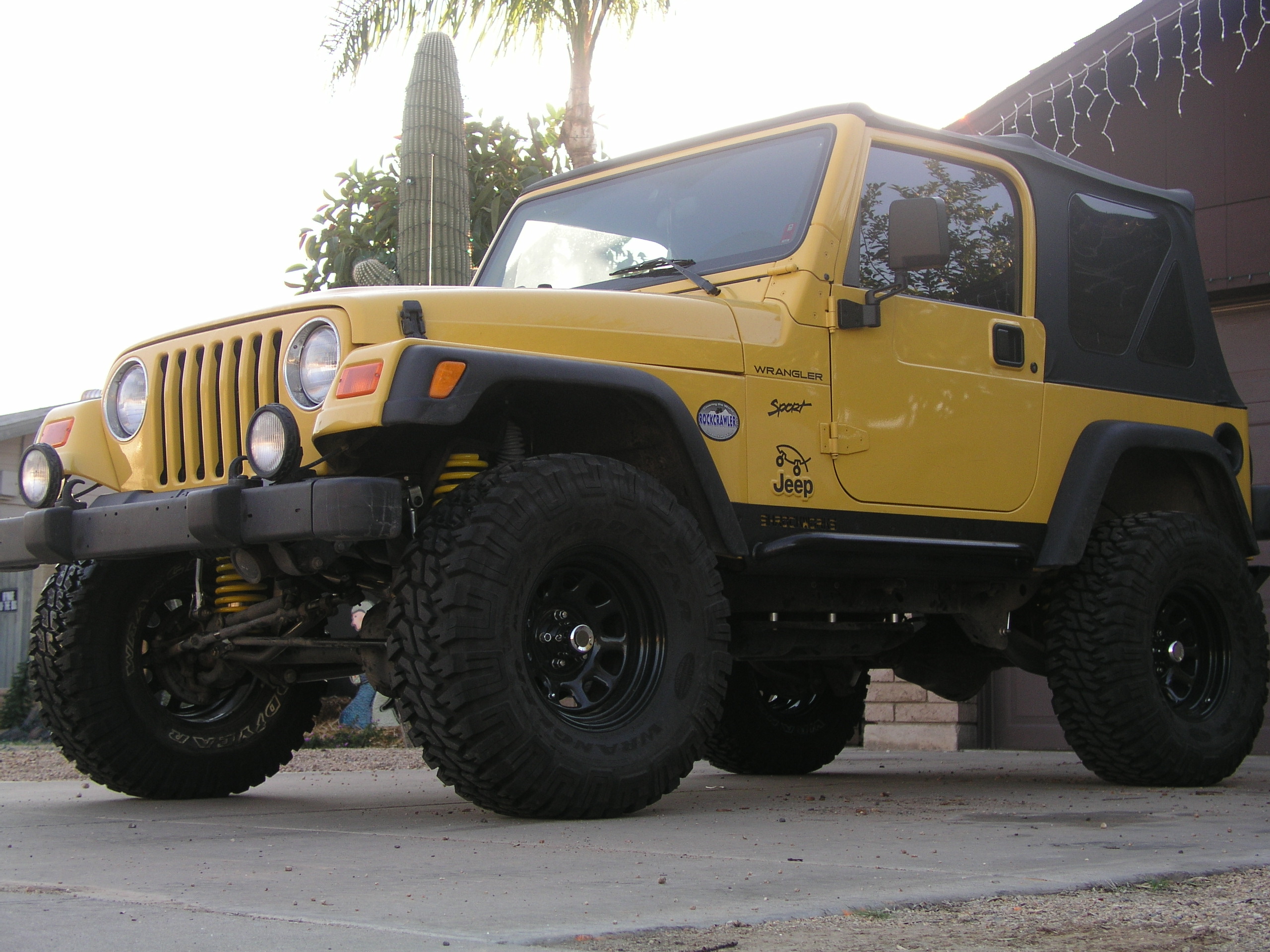 So now Dana's investment is well protected from side damage and looks even better with all that extra metal clinging to her yellow beast's sides.  Now it's time to take them out and try to scuff them up so she doesn't look as much like that kid at school with the shiny new backpack that always got picked on.  -Guy I know.  -Swear.
