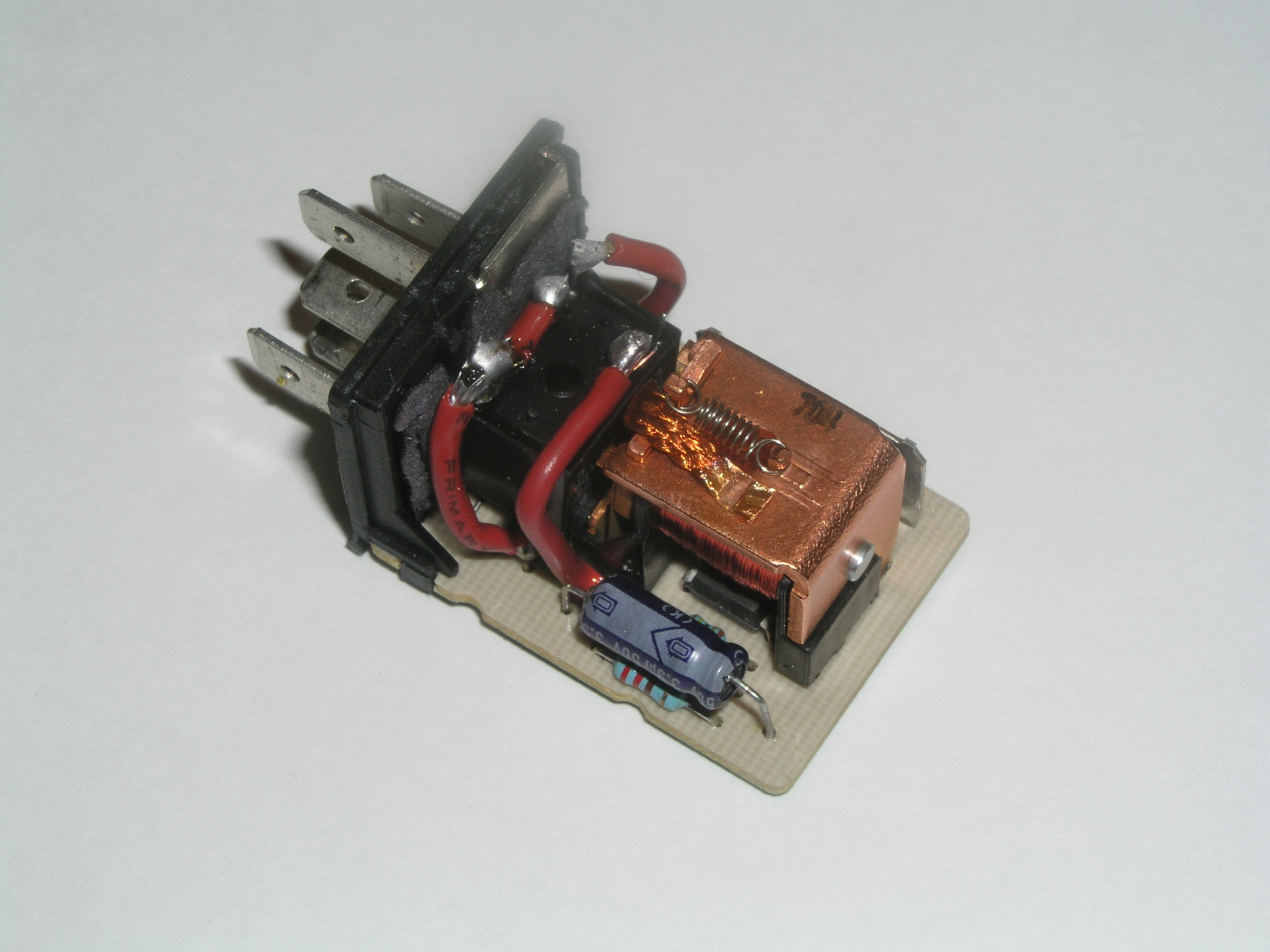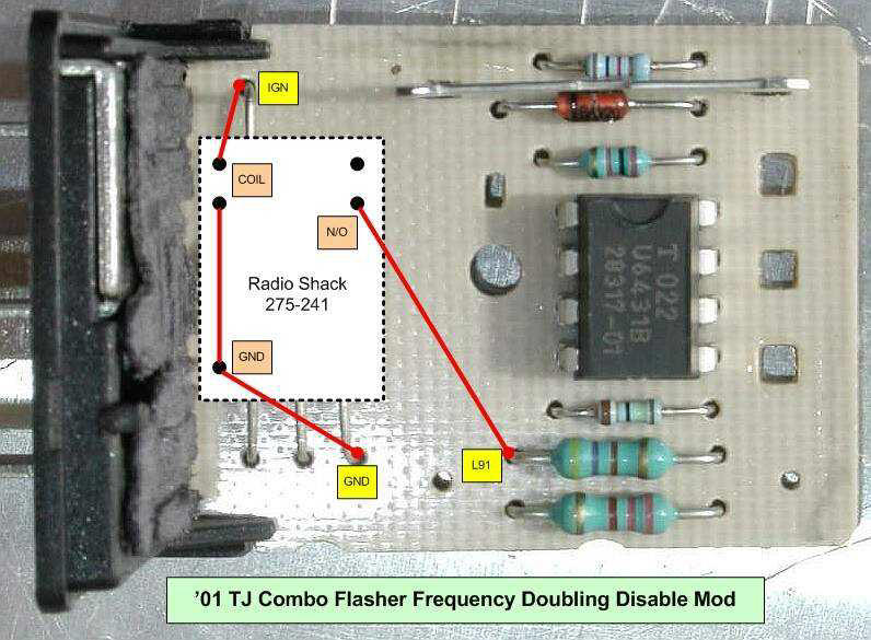 #2 The flasher while looking like a sealed item actually has its own sheath easily removed by prying up the three small tabs on the pronged side. The 275-241 relay has plenty of room to fit inside with the other components. |
