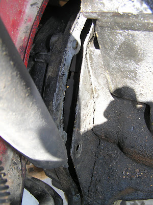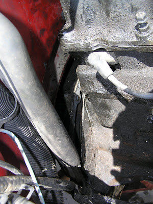 Removed the wiring harness, and the tranny-engine bolt. Unfortunatly we found two bolts at the top of the tranny that we couldn't get undone. :((