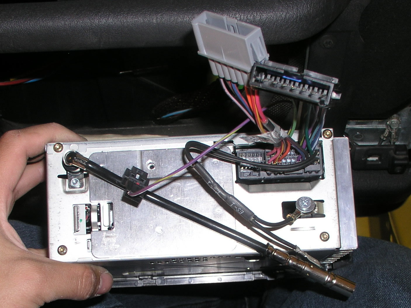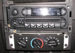 We knew we were up against a few problems before we begun. Different wiring, brackets, and most importantly, different dash bezels. I figured though, with a $40 steal off Ebay that came out of an '04 Dodge Ram, it was worth a shot. I went ahead and added to the challenge by attempting to retroactively install a Ebay bought console sub/amp at the same time. Upon researching I found that the newer model stereos needed a special wire harness to adapt into later years' wiring and a special antenna adapter. I picked up the harness from the dealer but Circuit City sold me the antenna wire cheaper and had it in stock.